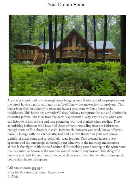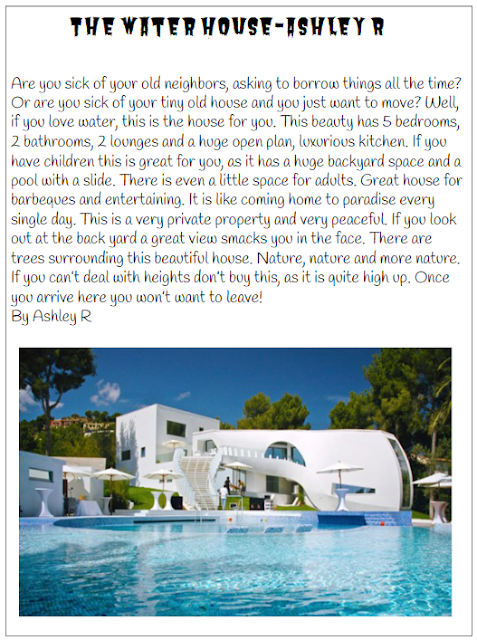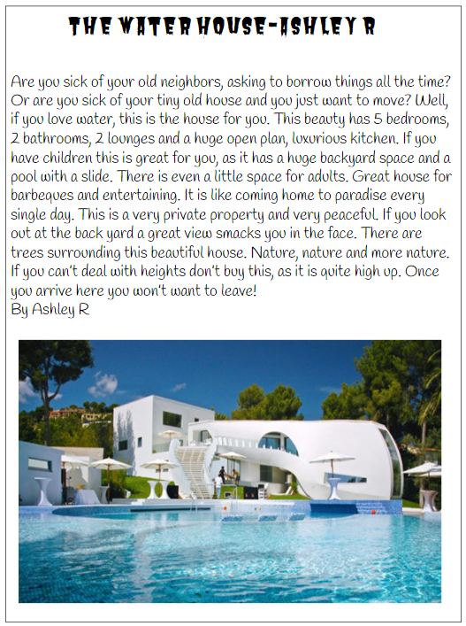 This week we have been working on some creative, expository pieces of writing. We have been writing advertisements to sell some pretty extraordinary properties! It is fair to say that Miss Fleet wants to buy all of our houses!