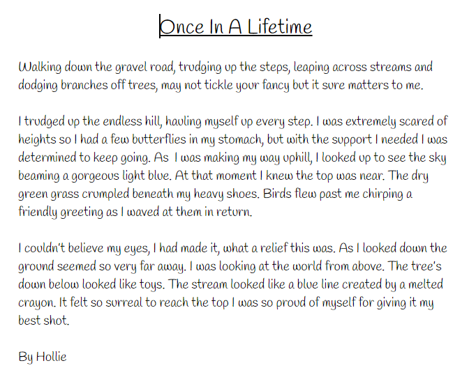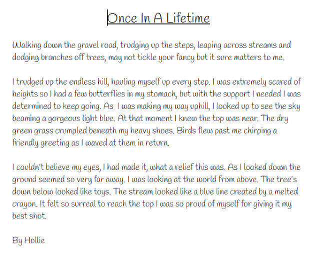 From a recent page in our shared novel, 'The Hunger Games' we created some short stories and tried to be as creative as we could with what we came up with. It was certainly a lot more difficult than we thought!
